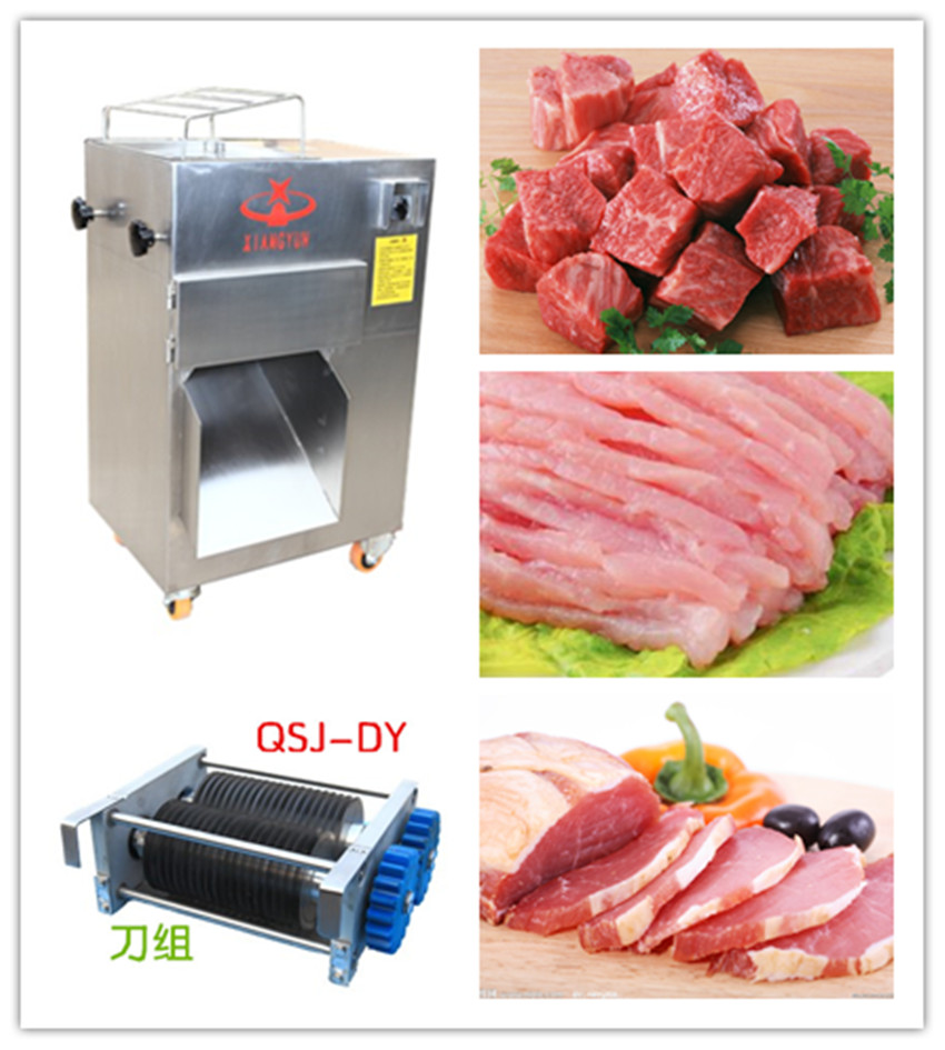 ●本機(jī)可根據(jù)客戶加工產(chǎn)品需要,配置不同形式刀組,分別實(shí)現(xiàn)對無骨肉類及類似榨菜富有彈性的食物切成絲或片功能、對雞鴨鴿等禽類切片切丁功能。